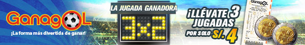 Todos los boletos de Ganagol que contengan 3 jugadas o un múltiplo de 3 jugadas (6, 9, 12, etc.), pagarán únicamente S/. 4 por cada grupo de 3 jugadas, obteniendo una rebaja de S/. 2 por cada grupo de 3 jugadas adquiridas.